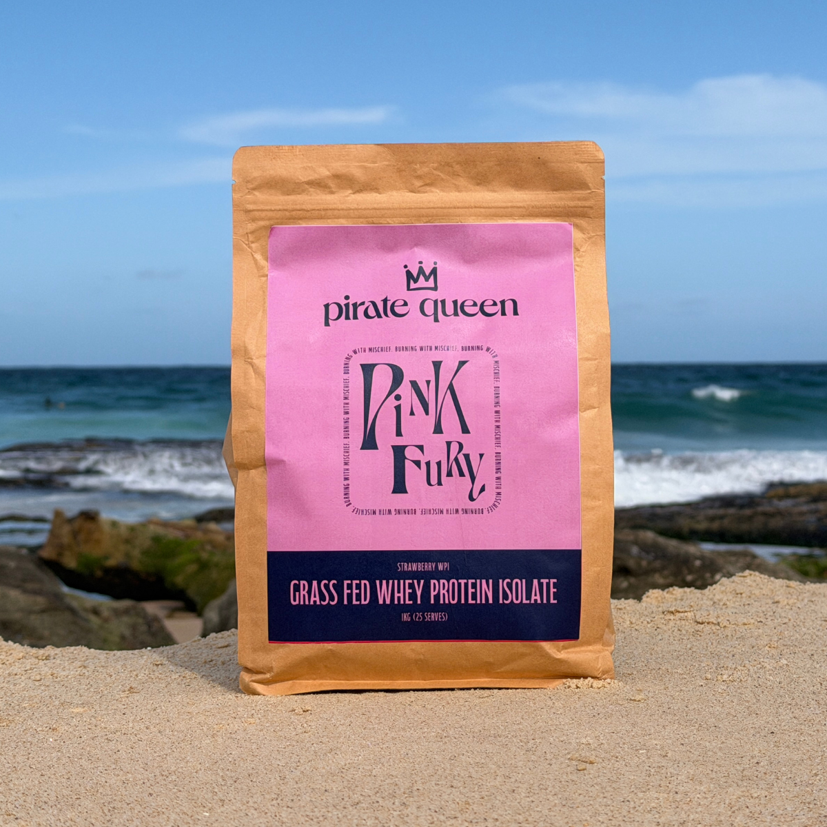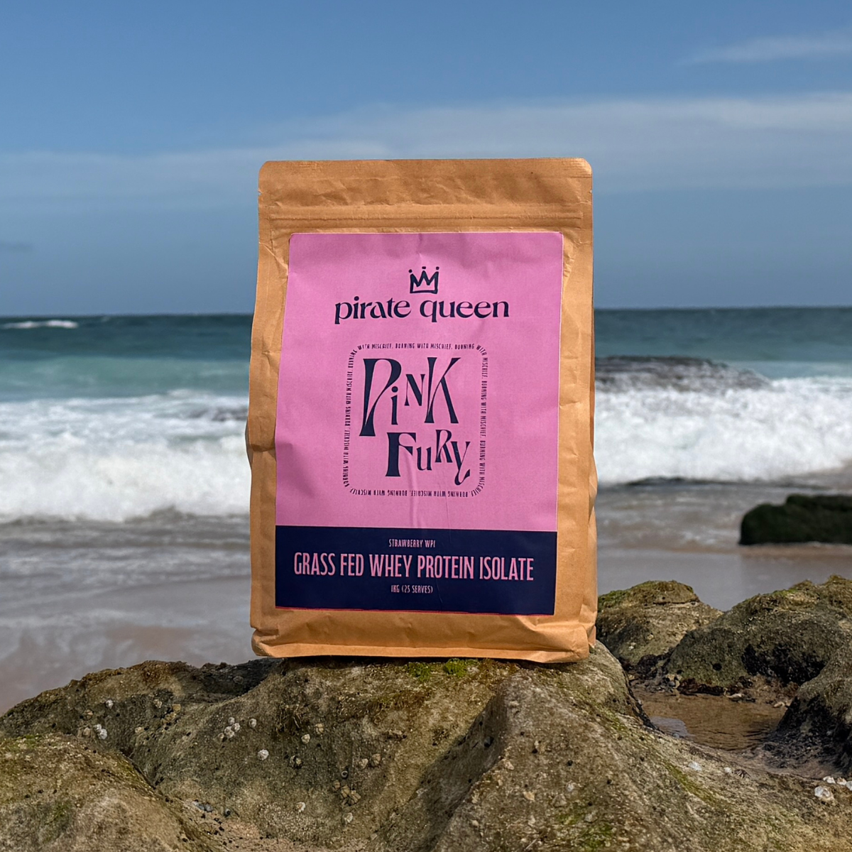 Pink Fury runs on grass fed WPI (Whey Protein Isolate). It’s mostly protein, minimal extras, fast absorbing, generally easier on most people than basic whey. Plus Icelandic sea minerals for the long game, bone, muscle, structure.